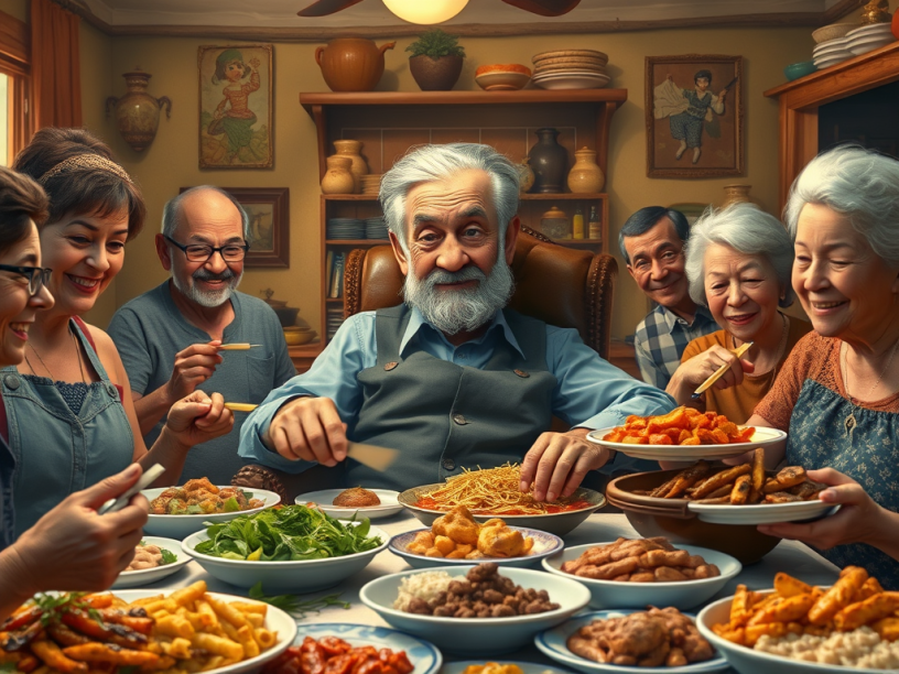 No centro da sala, numa cadeira de espaldar alto, estava o velho Armando. O avô. Já falecido há anos, mas, naquele dia, perfeitamente presente. Com sua camisa de botão sempre aberta demais, as sobrancelhas unidas num vinco crítico, ele mastigava em silêncio, saboreando cada prato com o ceticismo de quem já provou o mundo inteiro — e achou quase tudo “mais ou menos”.